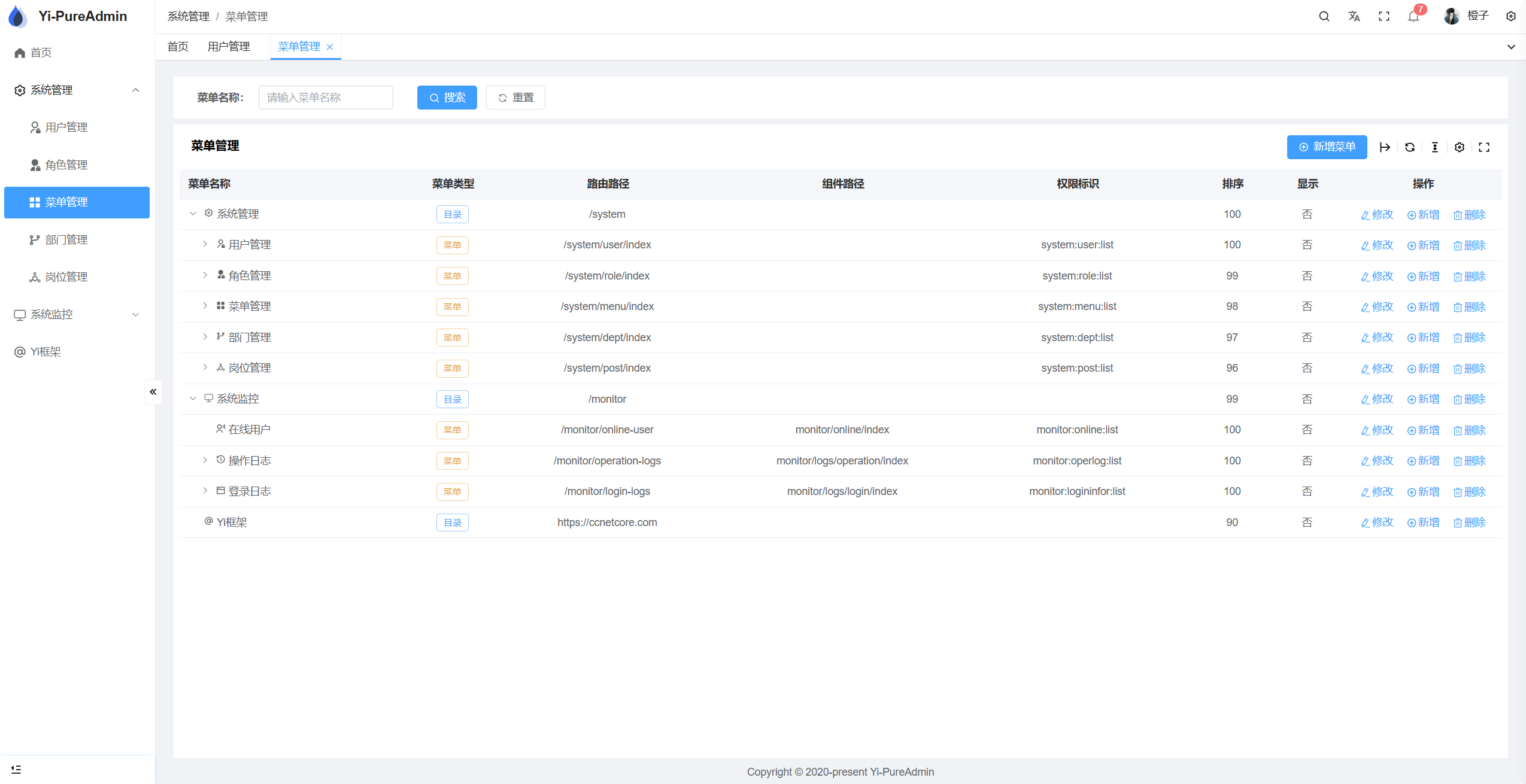 • 菜单管理