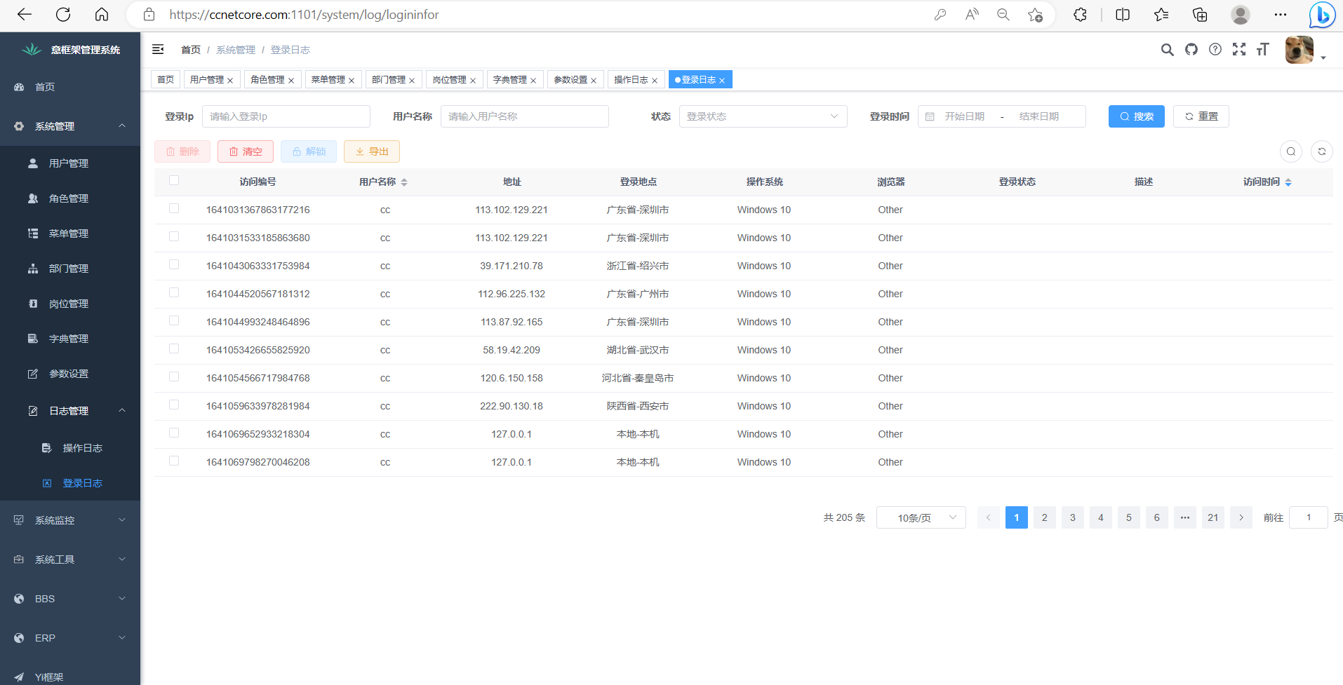 • 登录日志