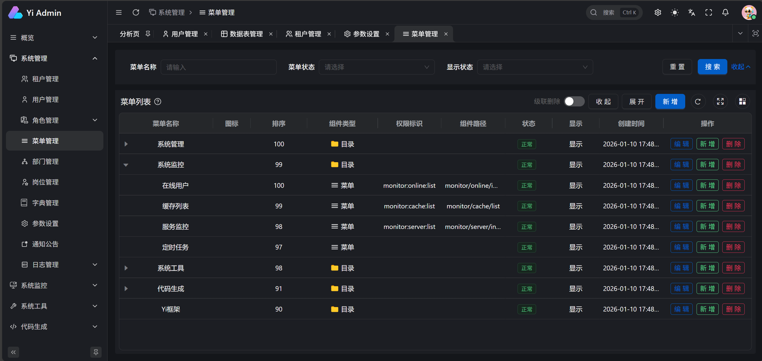 - 菜单管理